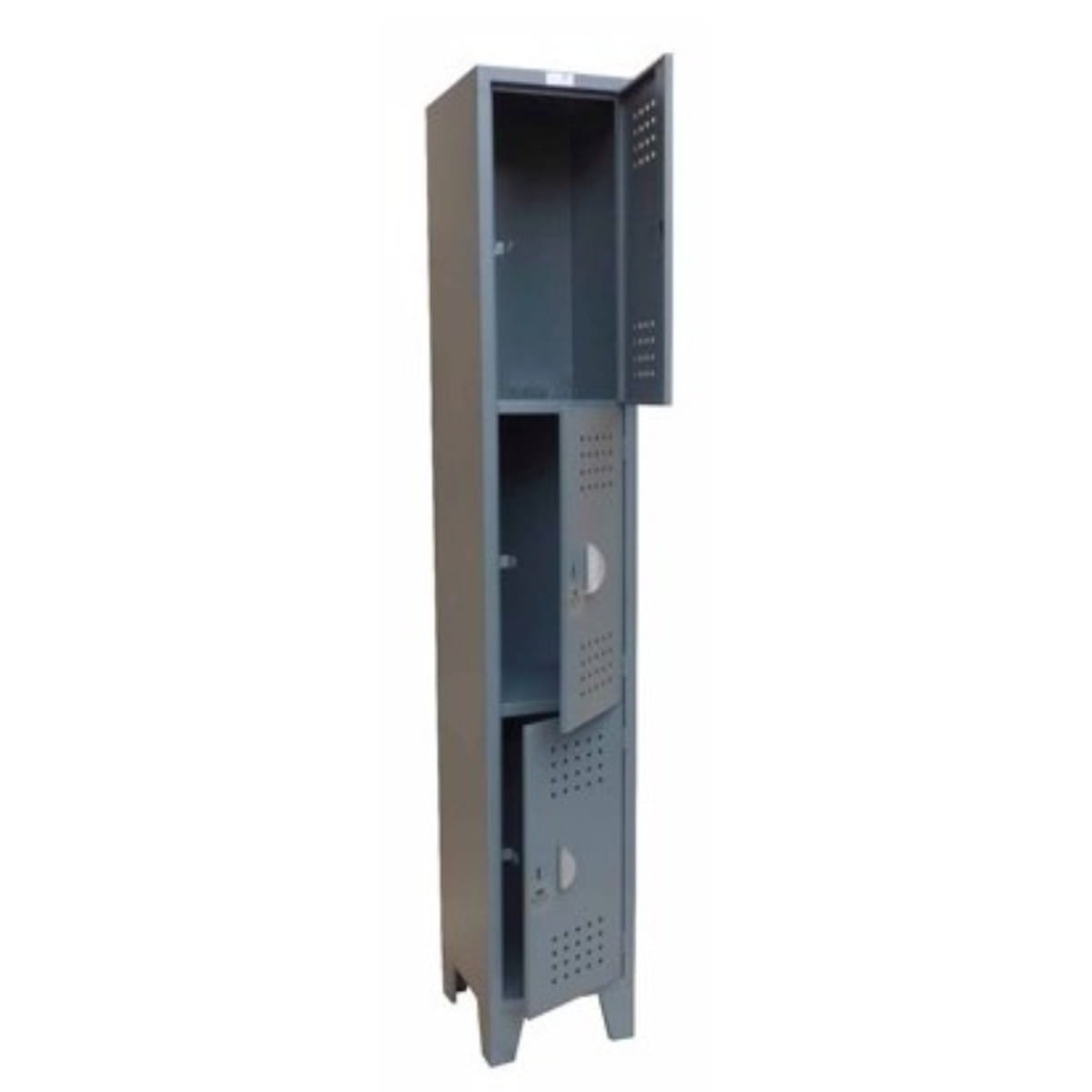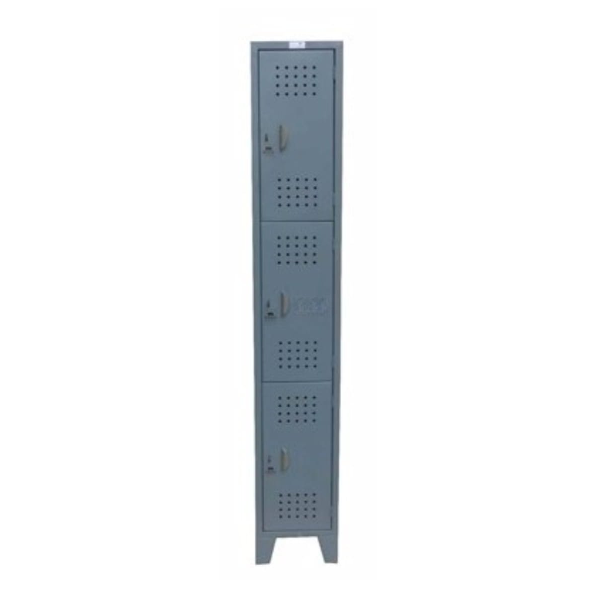 Locker metálico 3 de puestos ideal para guardar objetos personales, 1 columna, elaborado en lamina cold rolled calibre 22, puertas metálicas con bisagras externas y portacandados, color según elección y disponibilidad (gris aluminio, gris ratón, gris nopal, negro, azul marino, beige)