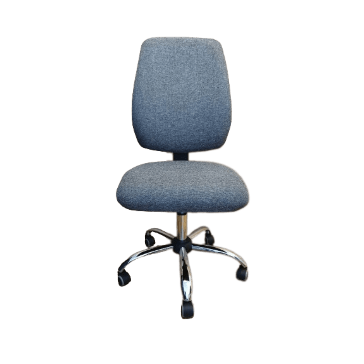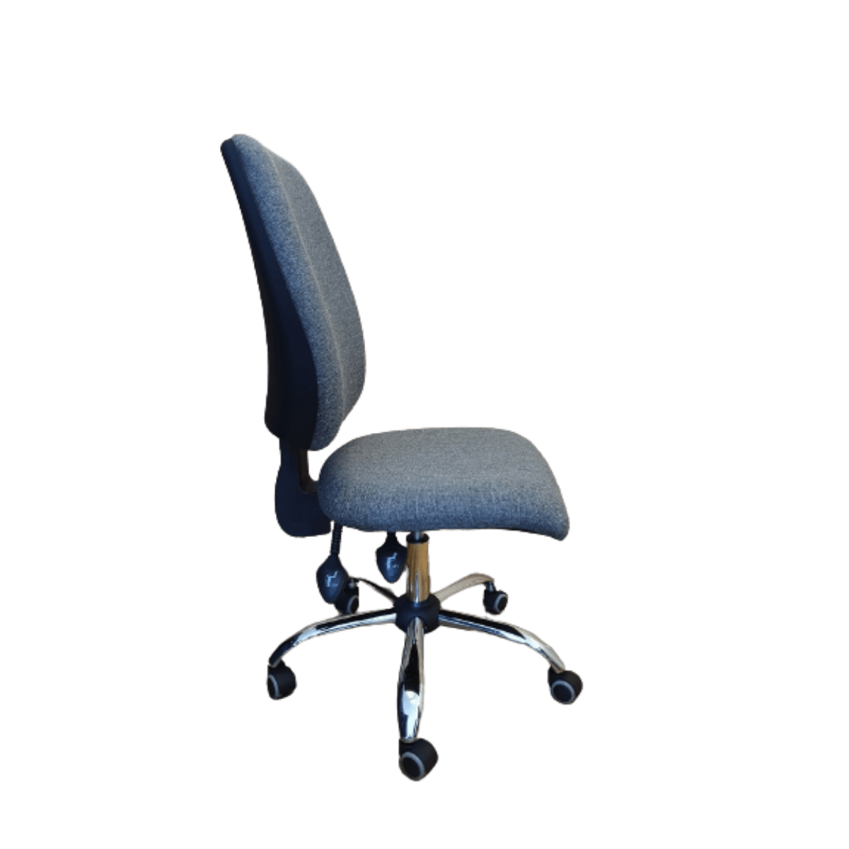 Silla gerencial ergonómica, cómoda, ideal para personal de estatura alta y contextura gruesa que necesitan trabajar largas jornadas laborales, espaldar y asiento en espuma de alta densidad, mecanismo que permite graduar el espaldar, tapizado en paño, base metálica de alta resistencia, rodachinas de suave rodamiento y rápido cambio de dirección.