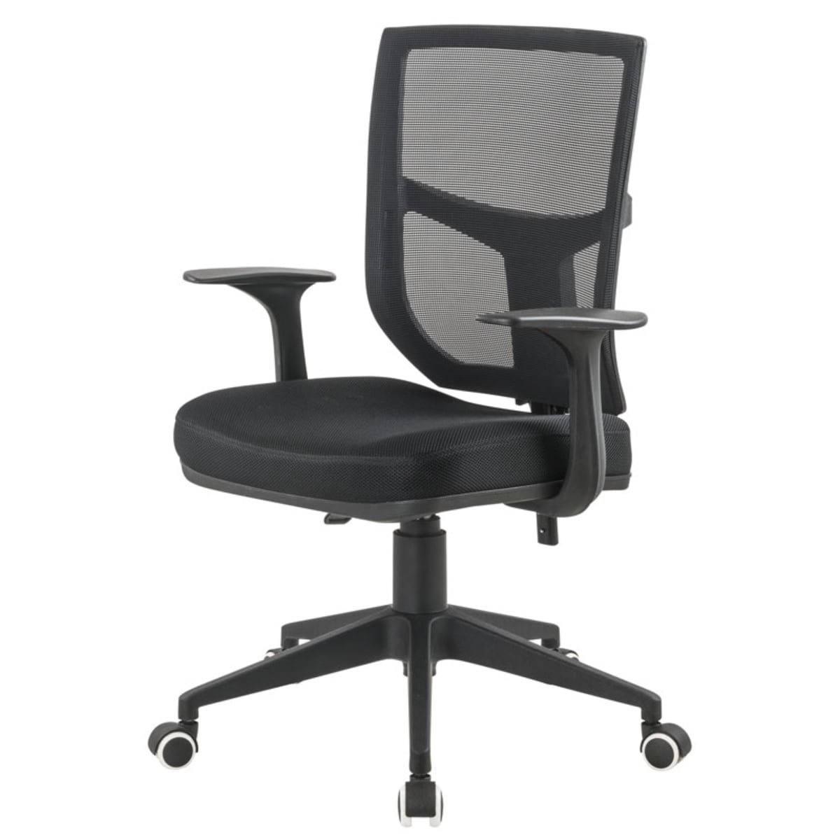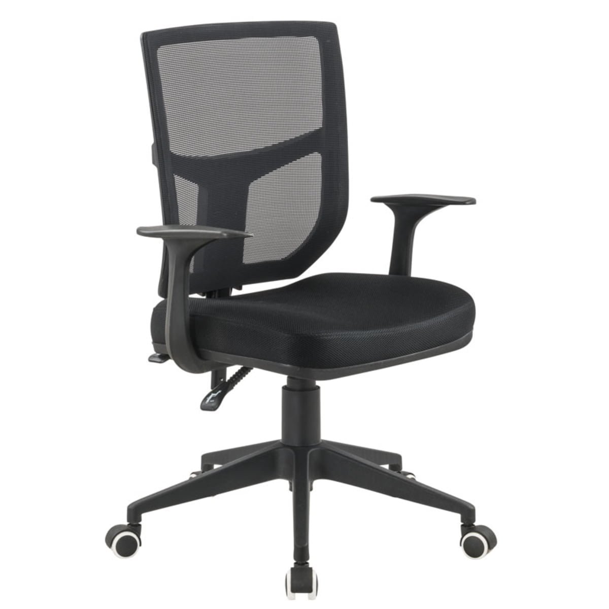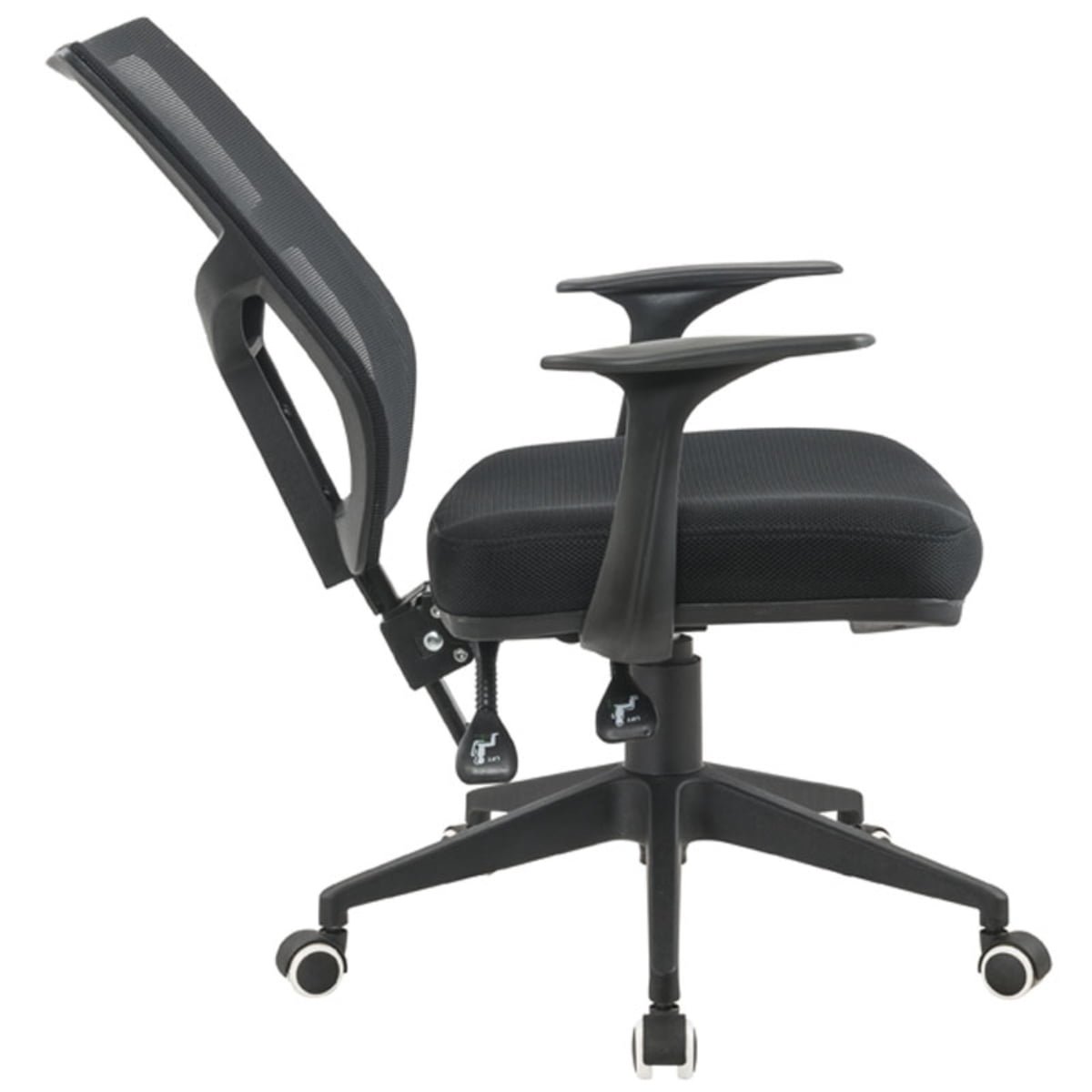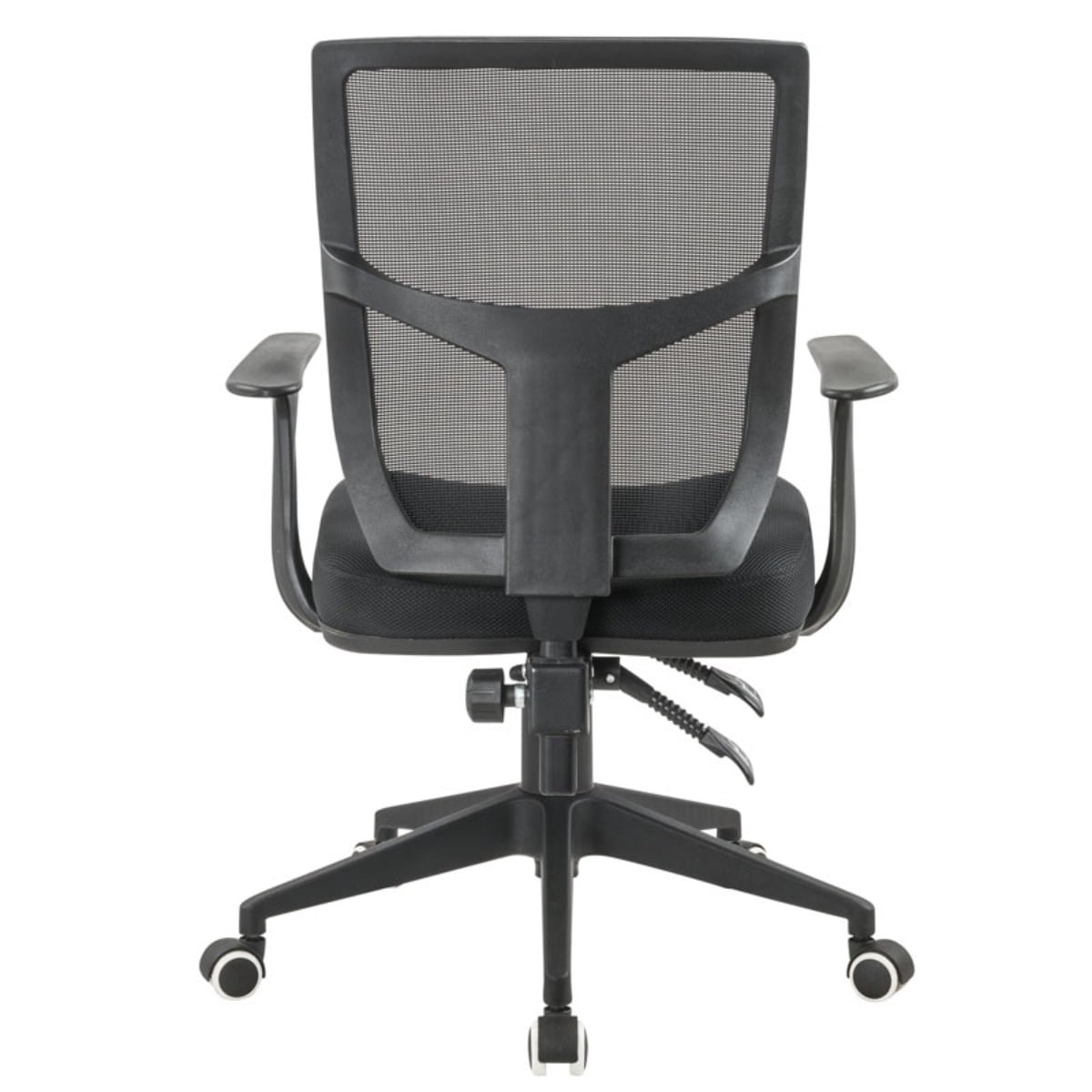 Silla gerencial ergonómica, cómoda, ideal para largas jornadas laborales, espaldar en malla negra traslucida de alta resistencia, apoya brazos fijos, sistema 2 palancas para graduación de espaldar, asiento en espuma de alta densidad, tapizado en tela mallada antitranspirante, base en nylon de alta resistencia, rodachinas de suave rodamiento y rápido cambio de dirección.