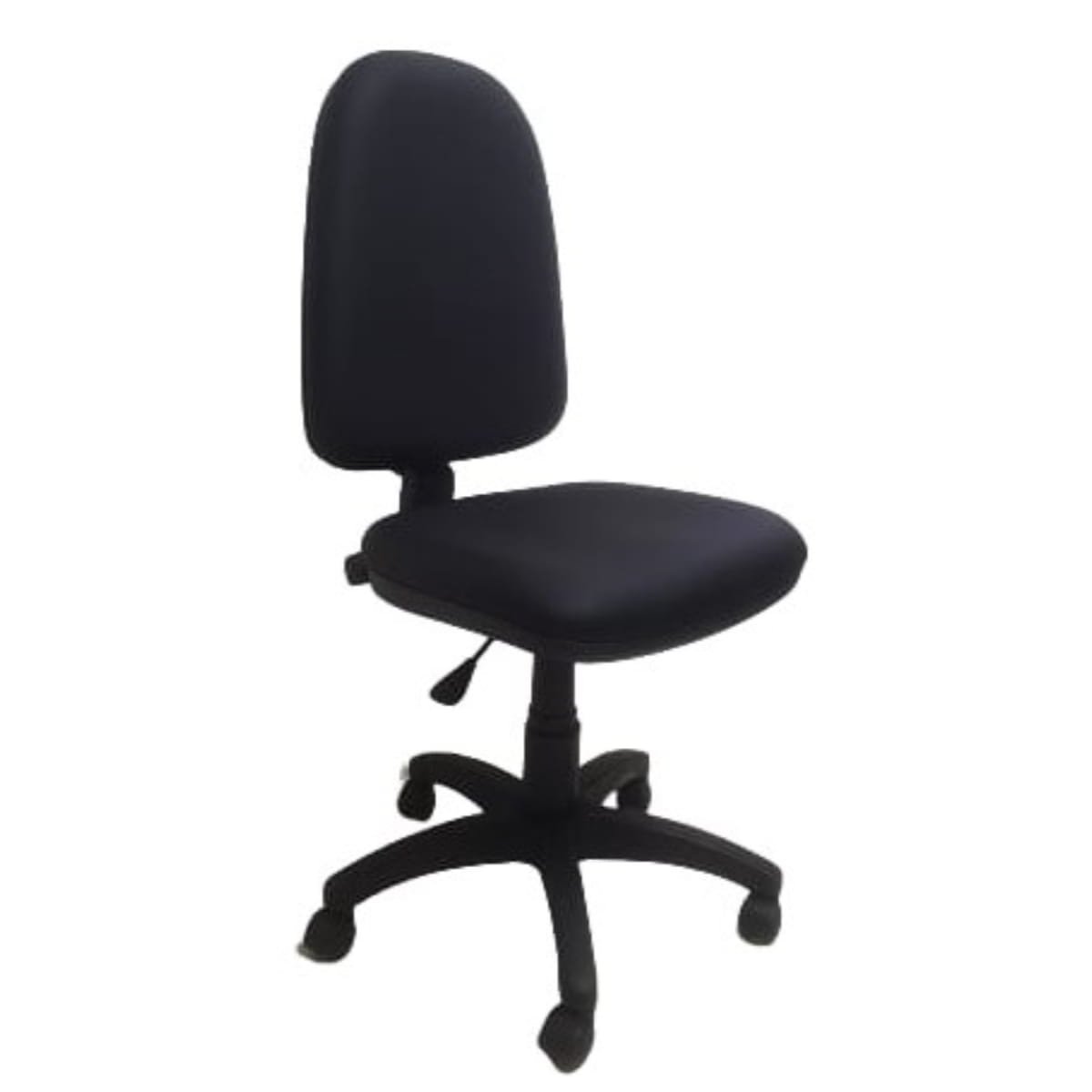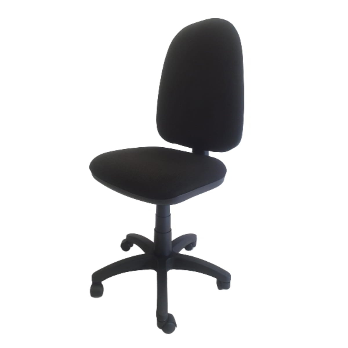 Silla secretarial ergonómica, cómoda, ideal para largas jornadas de trabajo, espaldar alto, asiento en espuma de alta densidad, tapizada en paño, sistema que permite graduar el espaldar en altura y profundidad por medio de perillas, rodachinas de suave rodamiento y rápido cambio de dirección.