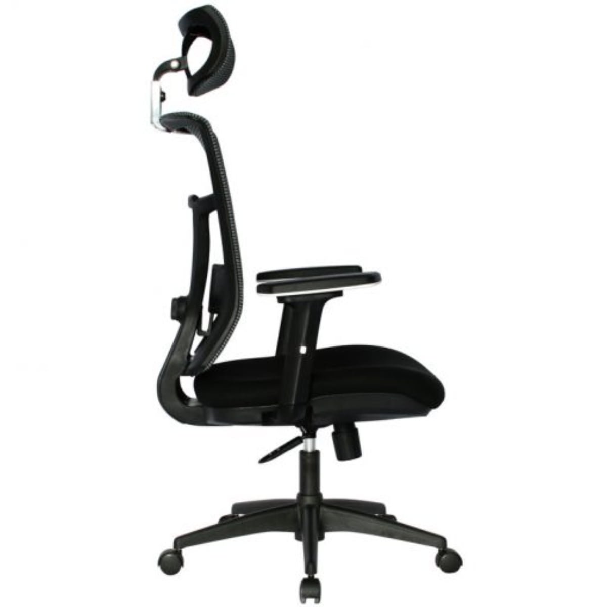 Silla Presidencial ergonómica, cómoda, elegante, ideal para largas jornadas laborales, cabecero graduable, espaldar en malla gris traslucida de alta resistencia, soporte lumbar graduable en profundidad, brazos graduables en 3 D, asiento en espuma inyectada, tapizado en tela micro suave, sistema basculante, base en nylon de alta resistencia, rodachinas de suave rodamiento y rápido cambio de dirección.